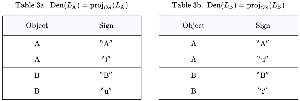 Tables 3a and 3b show the denotative components of the sign relations associated with the interpreters and