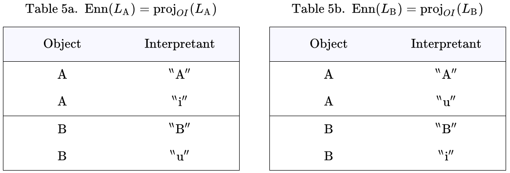 Tables 5a and 5b show the ennotative components of the sign relations associated with the interpreters and