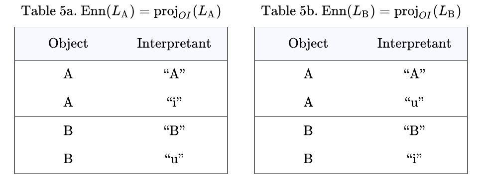 Tables 5a and 5b show the ennotative components of the sign relations associated with the interpreters and
