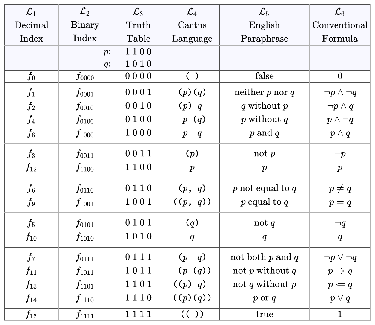 Table A1. Propositional Forms on Two Variables (Index Order) 1.0